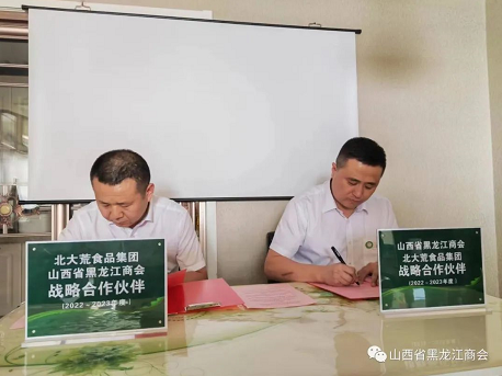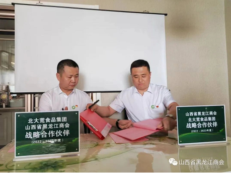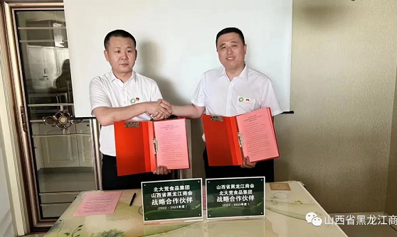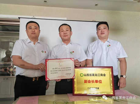 山西省黑龙江商会会长张士维和北大荒食品集团郑州有限公司山西省区魏江代表双方签署协议。会长张士维、执行会长付强向魏江颁发商会副会长牌匾及聘书。参会企业家代表作了交流发言。
