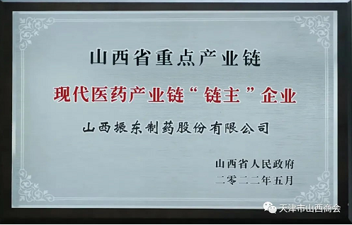日前,山西省政府召开全省重点产业链链长制工作会议,为首批20家“链主”企业授牌。天津市山西商会(晋商俱乐部联合发起机构)会员企业振东制药凭借在现代医药领域的突出优势,成为现代医药“链主”企业,山西产业链链长制进入全面实施阶段。