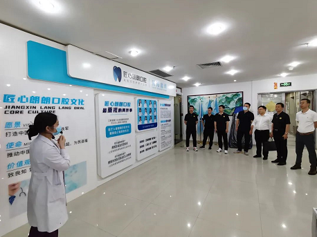 活动第一项,由朗朗口腔医师带领商会一行参观门诊部院内环境并向我们介绍朗朗口腔的企业文化、设施设备。