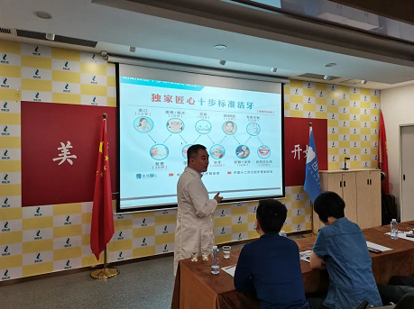 活动第二项,朗朗口腔大学讲座。由朗朗口腔院长刘杰为我会一行介绍目前国内外口腔医疗情况、国内常见的口腔疾病、日式十步洁牙法、朗朗十二步口腔护理。