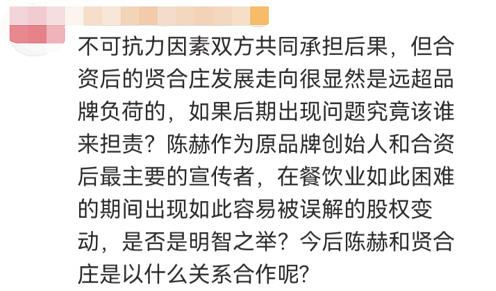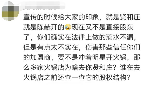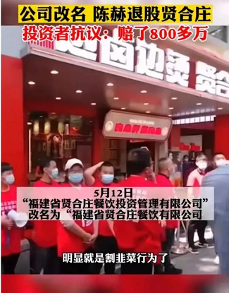 在这篇文章中,贤合庄火锅多个加盟商来到成都总店门口进行维权的画面,再加上陈赫退出贤合庄餐饮等股权变动,确实让人很难不去联想。
