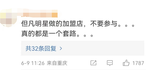 网友一条“但凡明星做的加盟店,不要参与,都是一个套路”的评论,获赞过千。