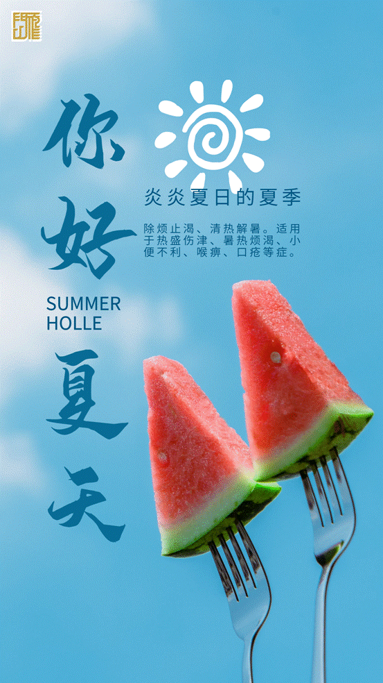 西瓜:除烦止渴、清热解暑。适用于热盛伤津、暑热烦渴、小便不利、喉痹、口疮等症。