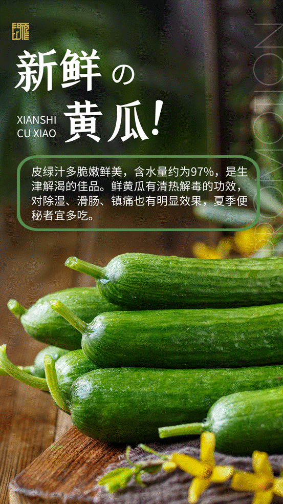 黄瓜:皮绿汁多脆嫩鲜美,含水量约为97%,是生津解渴的佳品。鲜黄瓜有清热解毒的功效,对除湿、滑肠、镇痛也有明显效果,夏季便秘者宜多吃。