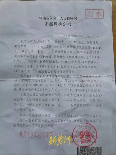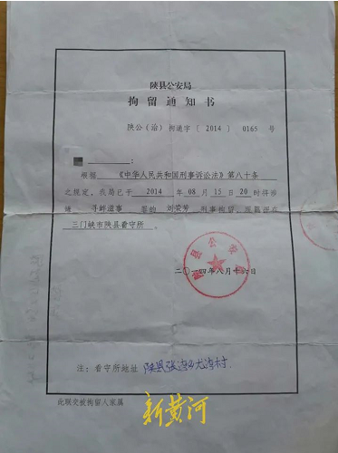 宁刚旦也有相似的遭遇。2014年8月,宁刚旦以涉嫌敲诈勒索罪名,被陕县公安局民警带走,后被陕县人民检察院批准逮捕,前后一共被羁押了近9个月。“民警说我举报的目的是为了敲诈,矿上一施工队队长高某某为息事宁人给过我10万元。我反复对民警说,10万元一事纯属子虚乌有,是有人在做伪证害我,目的就是想把我关起来,不再让我举报。”宁刚旦回忆道。