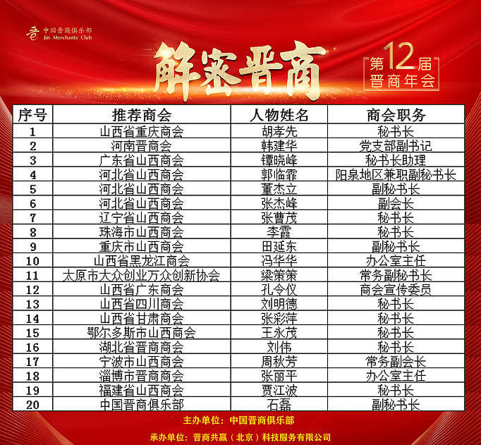 晋商年会优秀晋商榜单
