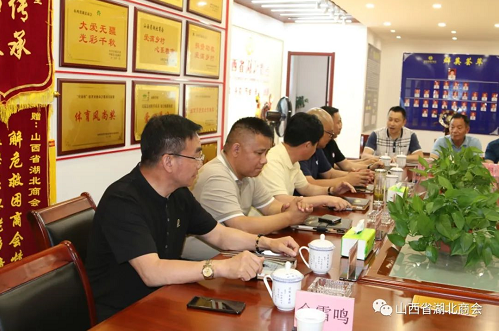 6月17日下午,江陵县政协主席肖吉武率领江陵县招商考察专班一行10人莅临山西省湖北商会考察交流。商会会长段劲州,监事长廖朝阳,常务副会长吴新华,副会长龚道友、龚礼、郑安来,秘书长刘少华等参加了交流活动。