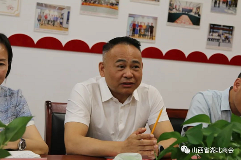 段劲州会长向江陵县领导介绍了山西省湖北商会的发展历程,会员企业涉及的领域。他就商会企业近年来回乡创业投资的情况进行了简要说明,并真诚希望各级政府在引进企业后,还要多关注企业的后续工作,为家乡未来的可持续发展筑巢引凤,帮助企业在家乡扎根发展壮大。