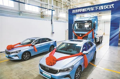 全省首台甲醇重卡和全球首台醇电混动轿车下线。本报记者 耿新洲 摄