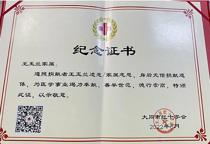 “父亲是个老党员,受他的熏陶,我们一家人都认为应该为人民、为社会做些有益的事。人在去世后再讲究排场没有意义,不如做些实实在在的贡献,我在2018年9月2日就登记成为中国人体器官捐献志愿者。捐献遗体可以用于医学教学,让年轻医学学生在实践中学知识,这样也可以帮助有需要的人,母亲也是以另一种形式延续着生命的价值,我们都非常支持她。”王玉兰老人的儿子高攀在接受采访时说。