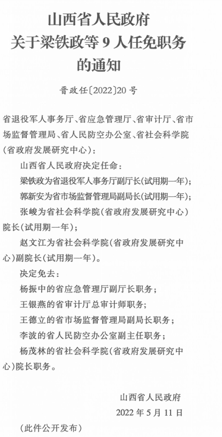 山西省人民政府决定任命: