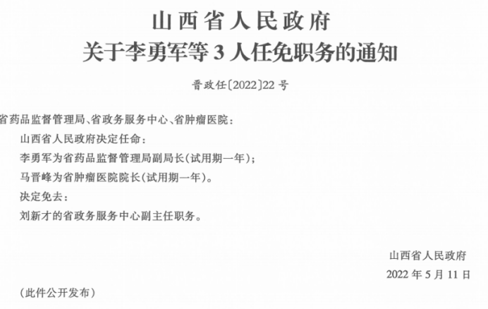 李勇军为省药品监督管理局副局长(试用期一年);
