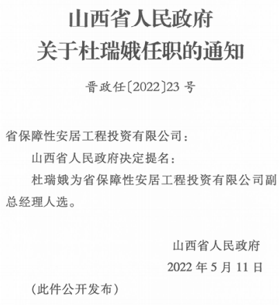 杜瑞娥为省保障性安居工程投资有限公司副总经理人选;