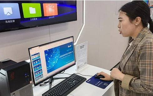 百信信息技术有限公司工作人员介绍公司的整机产品 新京报贝壳财经记者 白华兵 摄