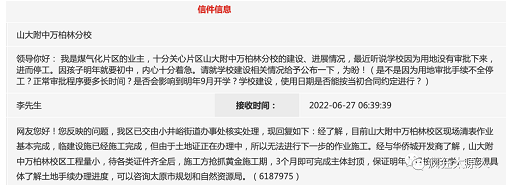 6月27日,万柏林区政府网站对此进行了正面回复,内容如下: