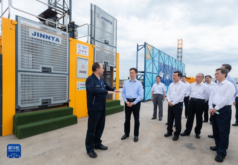 6月28日,中共中央政治局常委、国务院副总理韩正到山西太原调研,主持召开煤炭清洁高效利用专题座谈会并讲话。这是韩正走进山西建筑产业现代化潇河园区,察看绿色智能建筑装备制造基地建设情况。新华社记者 翟健岚 摄