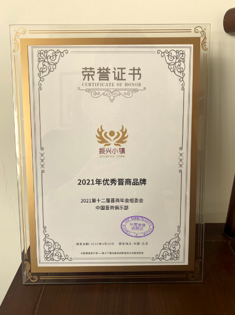 2022年6月29日,晋商俱乐部向2021十大优秀晋商品牌“振兴小镇”、国家AAAA景区振兴小镇创始人牛扎根颁发了荣誉奖牌。