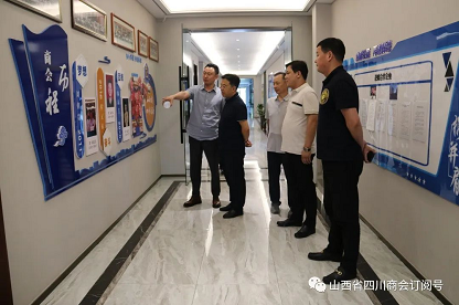一行领导首先参观了商会文化建设、党建情况,执行会长杨上永详细介绍商会发展历程、近期工作和未来发展思路。