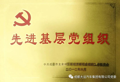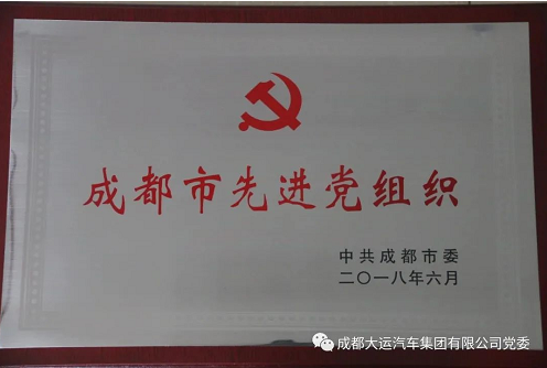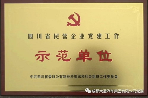 我会副会长单位成都大运汽车集团有限公司党委先后获得成都经开区“先进基层党组织”、龙泉驿区“先进党组织”、成都市“美丽成都·党员示范单位”和“蓉城先锋·基层示范党组织”,成都市“先进党组织”、四川省两新工委“民营企业党建示范单位”、四川省“先进党组织”等荣誉称号。