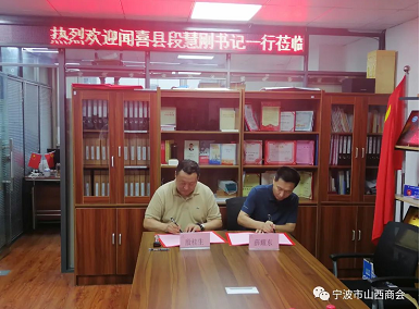 6月24日,山西省运城市闻喜县段慧刚书记一行来宁波市山西商会(晋商俱乐部联合发起机构)就闻喜县招商引资及闻喜和宁波两地产业资源对接事宜进行了座谈交流,并举行了签约仪式。同行人员包括:闻喜县经济技术开发区党工委书记、管委会主任薛耀东、副县长史学敏、徐刘建、生态环境局闻喜分局局长张水忠、县招商投资促进中心主任高俊伟、经开区投资促进部部长朱晶及副部长秦小琼等。商会会长殷桂生、商会顾问武晋宁、王宇明、常务副会长程丹彤、王勤学、副会长王小雷、秘书长崔晓波等参加了本次座谈交流并进行了接待。