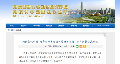 河南银保监局 河南省地方金融监管局提醒相关客户加快信息登记