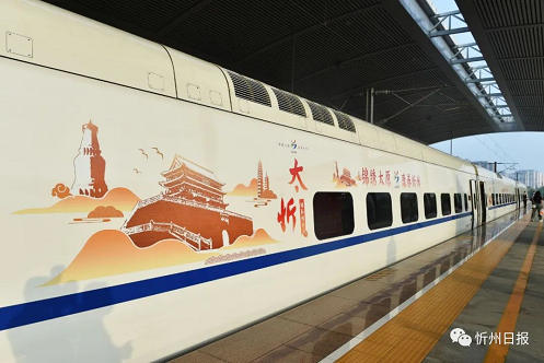 为提升“太忻号”城际动车的品牌知名度和旅游影响力,动车突出“锦绣太原·康养忻州”旅游元素,利用车身贴、海报等形式对车体进行立体式设计包装,体现城市旅游品质、展现沿途秀美风光。同时,对列车乘务人员进行针对性培训,使人人成为太忻经济一体化发展的服务员、宣传员、导游员,满足旅客需求,提升乘车体验。