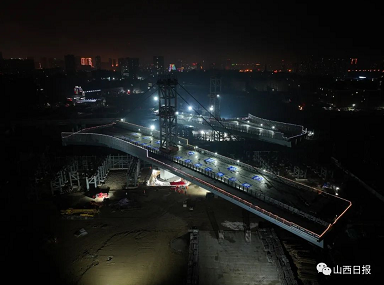 7月2日21时至23时,经过120分钟的“空中旋转”,由中铁大桥局七公司承建的临汾市河汾一路跨铁路桥左、右两幅异形钢箱梁成功转体,为全线通车奠定了基础。