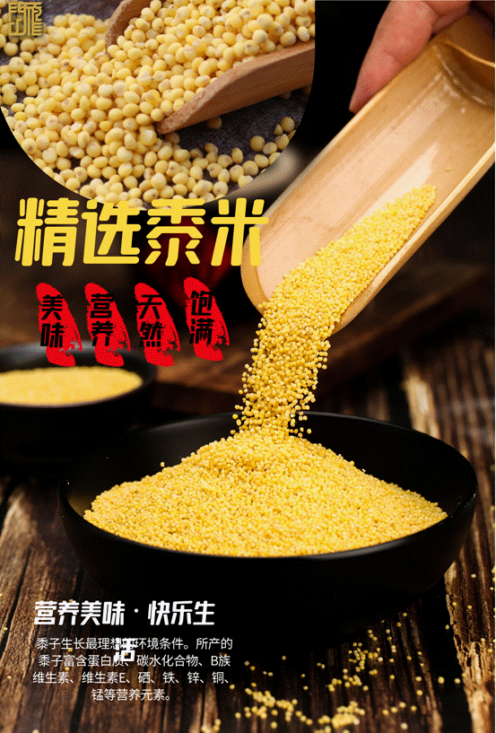 天然原料,无添加。黍米,分布于我国东北、华北、西北、等地山区都有栽培。黍米是中国古代主要的粮食以及酿酒的作物,是五谷之一,黍米是我国北方地区特有的一个品种,但是品质最好的要数山西省北部。