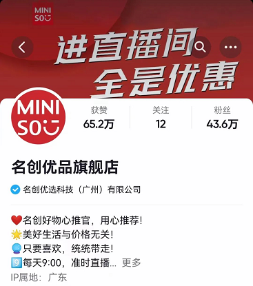 截至2022年6月,名创优品在抖音平台的官方账号(或授权账号、子公司官方账号)已经超过12个。粉丝量最大的是“名创优品旗舰店”。在过去一年的时间里,名创优品在抖音端“天天直播,一天不落”。