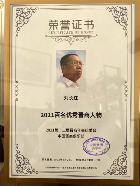 2022年7月15日,受2021第十二届晋商年会组委会、中国晋商俱乐部秘书处委托,新疆山西商会向2021百名优秀晋商人物、新疆晋疆宏业商品混凝土有限公司董事长刘长红颁发了荣誉奖牌。