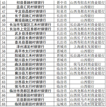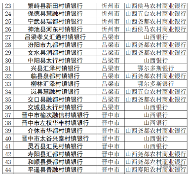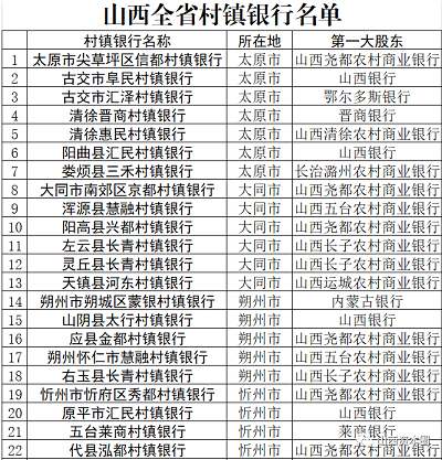 注:上表部分所属晋中银行、晋城银行等原五大城商行的村镇银行目前尚未进行工商注册信息变更,大股东暂按山西银行统计。