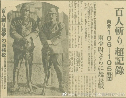 据澎湃新闻报道,1937年在攻占南京前后,与向井敏明进行了骇人听闻的杀人比赛,野田毅使用军刀野蛮地砍杀了中国军民105人。当时的日本媒体对这场“竞赛”给予了连续的大幅报道,以宣传日本军人的“勇武”。《东京日日新闻》在12月31日的报道中还配发了二人手持军刀的合影。1938年1月1日,上海租界的英文报纸《密勒氏评论报》转载了《东京日日新闻》刊载的向井敏明、野田毅二人杀人竞赛的消息,随后其他外国媒体也做了转载报道。1938年1月25日,《申报》(汉口版)也以《紫金山下杀人竞赛敌兵惨绝人寰》为题,转载了《密勒氏评论报》对“百人斩”的报道。同日,武汉《新华日报》也刊发了题为《南京紫金山下杀人竞赛,寇军暴行惨绝人寰》的报道。