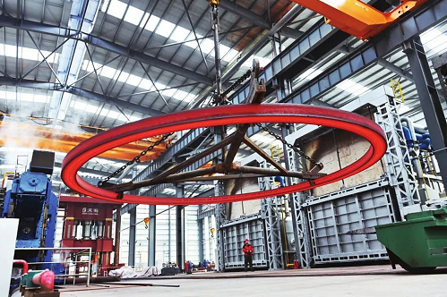 太重齿轮传动分公司质量管理人员正在对加工完成的齿轮进行尺寸检测。太重集团视生产质量为生命,引领装备制造率先发展,致力于为用户提供高质量的产品和服务。通讯员/摄