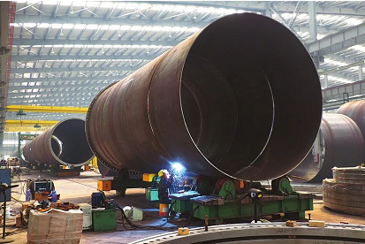 山西建投潇河公司风塔制造基地采用国内先进设备,以首次引进数控双曲线切割机并正式投产为标志,山西建筑产业现代化(潇河)园区全面进军风电新能源装备制造领域。记者孙荣祥/摄