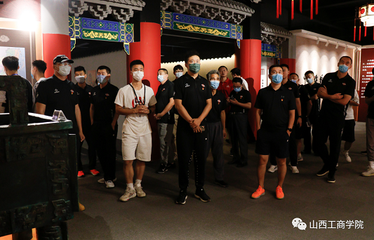 7月24日,第24届中国大学生篮球二级联赛男子全国总决赛开幕式在山西工商学院体育馆隆重举行,来自全国高校的31支篮球劲旅齐聚工商,7月28日上午,参赛队员、教练员、裁判员一行一百余人参观了山西工商学院大思政教育实践基地。