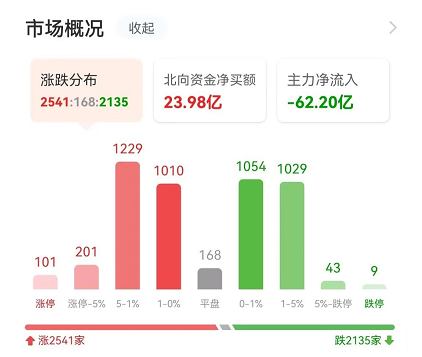 今日早盘上证指数被砸了下,10:45之后大盘探底回升,随后一路震荡走高。收盘三大指数分化,创业板指大涨超2%,两市成交额9939亿,较上个交易日缩量205亿。