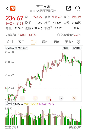 有点意外!刚被卖方机构下调目标价,今日超千亿市值的白酒二线龙头古井贡酒开盘6分钟就封上涨停,成交金额接近10亿,消息面上,公司上半年业绩大增。