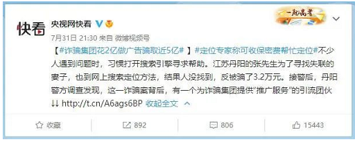针对此类诈骗事件,不少网友表示,接广告的平台,也就是搜索引擎,也需要得到处理。不过,在本次事件中,警方并未公开具体是哪个搜索引擎投放了诈骗广告。