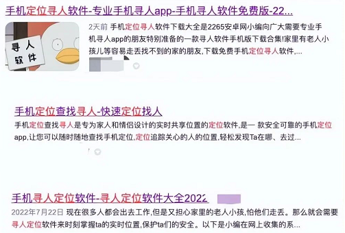 2021年3月份,张先生的妻子因为家庭琐事离家出走了。在妻子离开的两个月里,张先生四处寻找无果,突然想到之前看过电视剧中,有通过手机号码来定位找人的,于是在搜索引擎上输入关键词,点开了推送的广告链接。