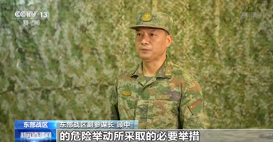 东部战区副参谋长顾中表示:这次联合军事行动,是针对美和台当局在台湾问题上的危险举动所采取的必要举措。战区组织多军兵种部队成体系、全要素展开,进行联合封控、对海突击、对陆打击、制空作战等多课目针对性演练和精导武器实弹射击,全面检验武器装备性能和部队联合作战能力,做好应对一切危机事态准备!我们正告那些心怀不轨窜台人员和“台独”分子,东部战区部队有充分的信心和能力反击一切挑衅,坚决捍卫国家主权和领土完整。