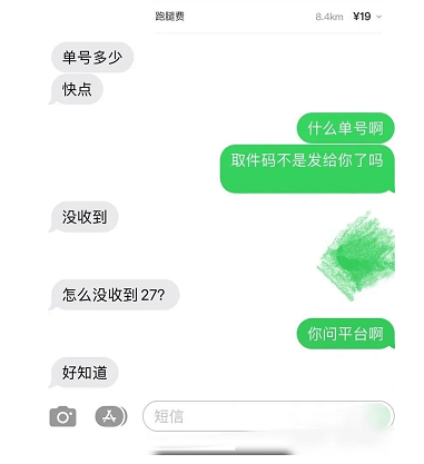 “请回答。”、“给我钱27。”“单号多少,快点。”“怎么没收到27?”