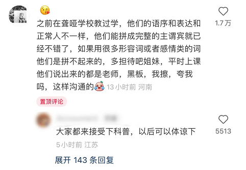 好在评论区里,有位曾在聋哑学校教过学的老师出来温柔地科普了: