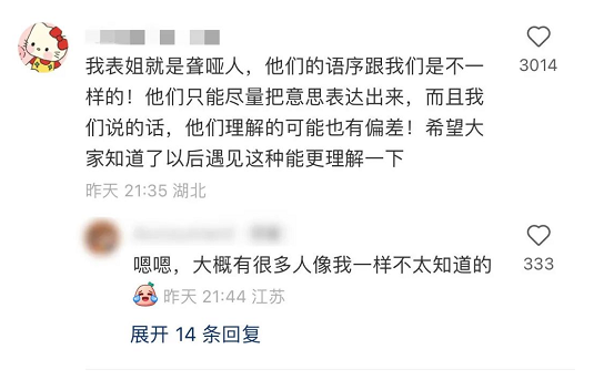 有位自己身边的亲戚就是聋哑人的网友也出来发声: