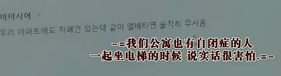 “我们公寓也有自闭症的人,一起坐电梯的时候,说实话很害怕。”