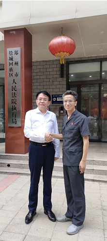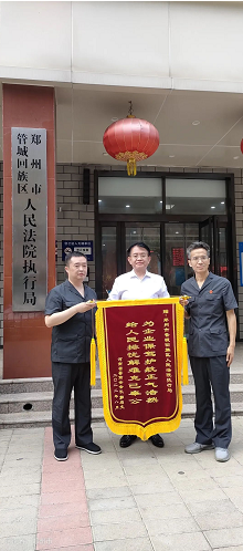 8月5日下午,河南省晋商会(晋商俱乐部联合发起机构)会长郭启文率有关企业人员,前往郑州市管城区人民法院,将书写着“为企业保驾护航正气浩然,为人民排忧解难克己奉公”的锦旗,赠送给郑州市管城区人民法院执行局,以表达我会对郑州市管城区人民法院的诚挚谢意,受到郑州市管城区人民法院执行局马新平局长的热情接待。