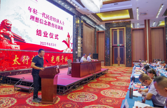 8月1日至3日,省工商联在太行干部学院举办年轻一代民营经济人士理想信念教育培训班,引导广大民营企业家学习和弘扬太行精神,坚定正确的理想信念,锤炼坚忍不拔、百折不挠的品格,激发乐于奉献、勇当重任的斗志,坚定拼搏意志、增强发展本领,胸怀“国之大者”,以实际行动报国为民,以优异成绩迎接党的二十大胜利召开。山西省甘肃商会(晋商俱乐部联合发起机构)党支部书记、会长赵震鹏、常务副会长常玉云一同参加学习。