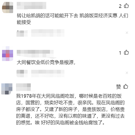对此,有网友表示,即便是历史悠久的凤临阁,也没经得住市场萧条的冲击。在市场大环境的重压下,其自身的经营问题加之较高的菜品价格让高档次高规格的凤临阁更是难以为继。