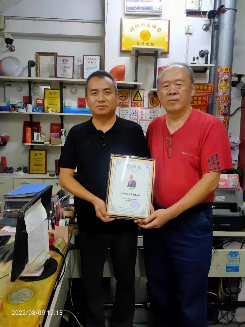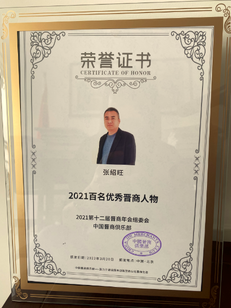 2022年8月15日,受2021第十二届晋商年会组委会、中国晋商俱乐部秘书处委托,洛阳市晋商会向2021百名优秀晋商人物、河南鼎梁消防科技有限公司董事长张绍旺颁发了荣誉奖牌。