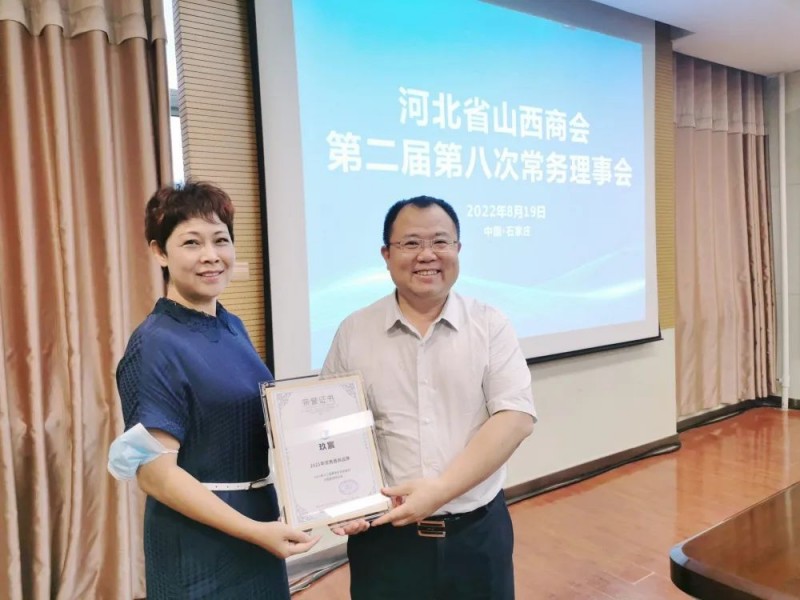 2022年8月22日,受2021第十二届晋商年会组委会、中国晋商俱乐部秘书处委托,河北省山西商会向2021十大优秀晋商品牌、河北方宸环保科技有限公司董事长张露颁发了荣誉奖牌。