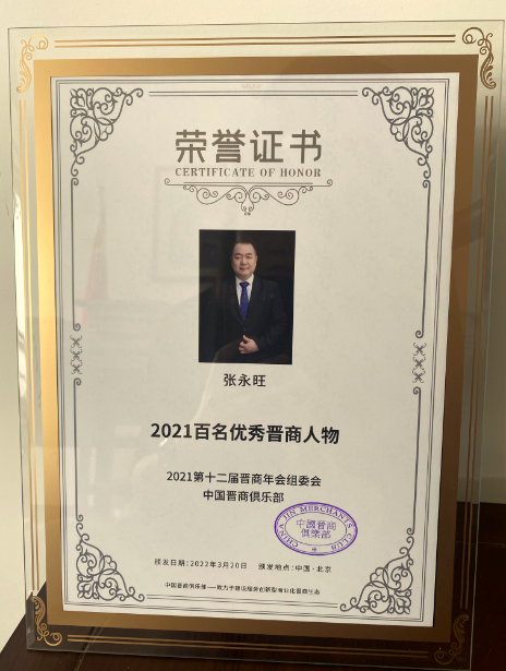 2022年8月22日,受2021第十二届晋商年会组委会、中国晋商俱乐部秘书处委托,河北省山西商会向2021百名优秀晋商人物、石家庄卓润照明(集团)有限公司董事长张永旺颁发了荣誉奖牌。